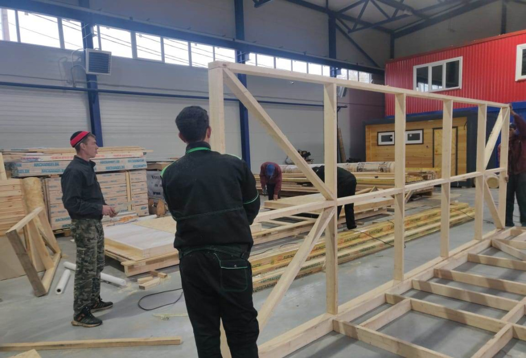 У нас большого размера крытый производственный цех, площадь которого позволяет собирать несколько конструкций одновременно и независимо от погодных условий, работа не останавливается не на минуту. В штате компании всегда работают высококвалифицированные специалисты, разделенные на бригады, благодаря этому нам удалось наладить процесс сборки так что простоев в работе нет и процесс изготовления занимает минимальные сроки.
